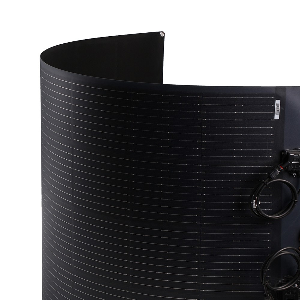Bu 100w Flexible Mono Günəş Paneli yüksək effektivliyə malik MONO PERC günəş batareyalarından istifadə edir və səthi yüksək keçiriciliyə malik ETFE, arxa tərəfi yüksək suya davamlı PET-dir. ETFE materialı adi materiallardan daha yüksək işıq keçiriciliyinə və daha uzun xidmət müddətinə malikdir. ETFE materialları gündən-günə ən yaxşı performansı təmin edir.